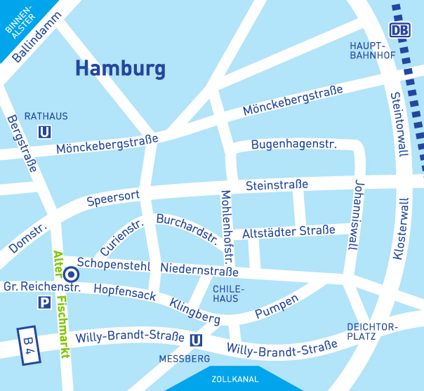 Unser Büro befindet sich zwischen Alster und Speicherstadt. Vom Hauptbahnhof sind wir leicht zu erreichen und die nächsten U-Bahn-Stationen „Rathaus“ und „Meßberg“ sind nur wenige
